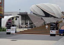 Im Gegensatz zu manchen Pavillonbauten ist man beim deutschen behutsam mit den verwendeten Baustoffen umgegangen, hat natürliche Lammellenlüftungen eingebaut und viel Holz verwendet. Das zentrale Gestaltungs-element sind expressive Membrandächer, die sowohl Schatten spenden als auch Energie erzeugen, dank Integration der erstmals eingesetzten wegweisenden organischen Photovoltaik-Technologie in den Solar Trees.