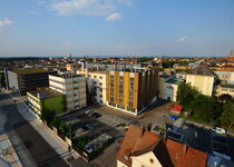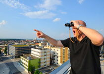 Die von Herrn Köninger geführte Tour startete mit einer grandiosen Aussicht vom Hochhaus der Wüstenrot. Danach genossen wir das Panorama vom Dach des neuen nh-Hotels neben der MHP Arena. Im Anschluss ging es hoch auf den Turm der Evangelischen Stadtkirche.